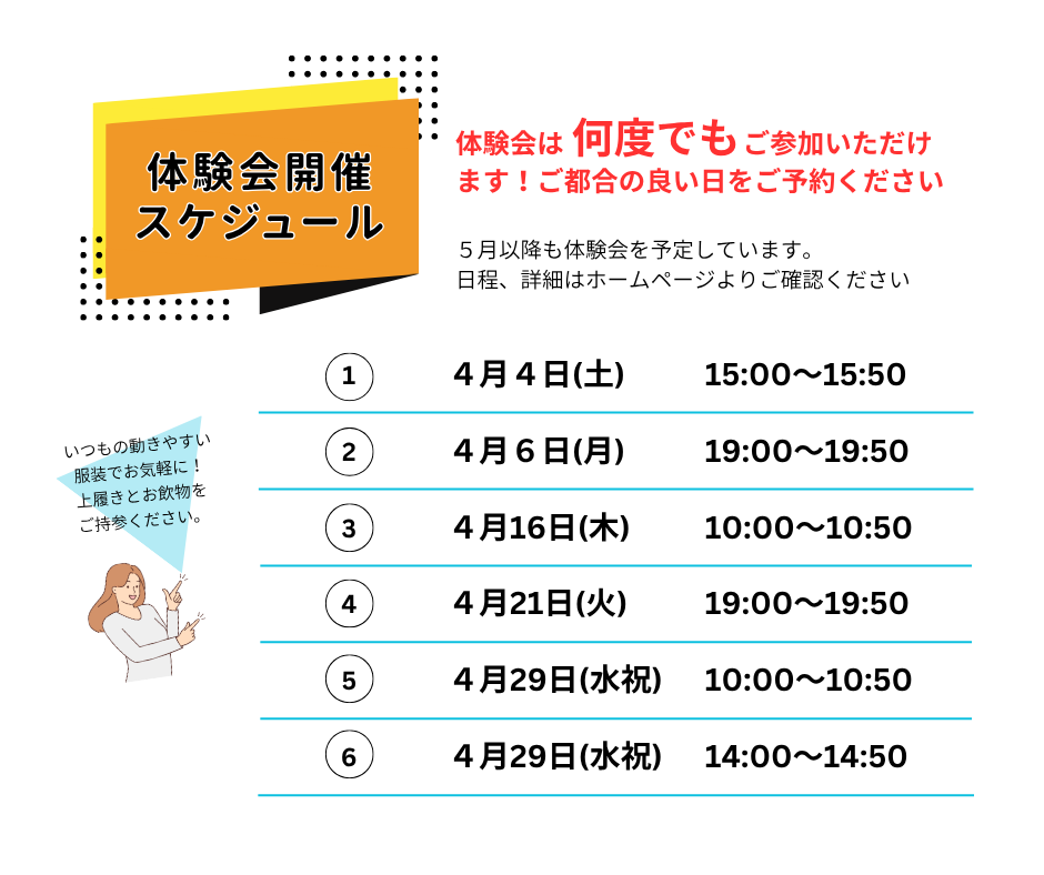 何か始めてみたい、そんな方にピッタリの体験会です!